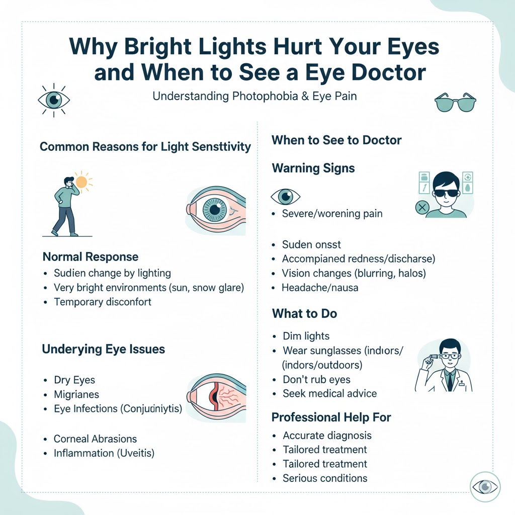 Do bright lights suddenly feel uncomfortable? Do festive lights, car headlights or even phone screens make you squint or close your eyes? If yes, you are not alone. Sensitivity to light, also known as photophobia, is a common eye complaint. While it is sometimes temporary, ongoing discomfort with bright light may point to an eye condition that needs medical attention.